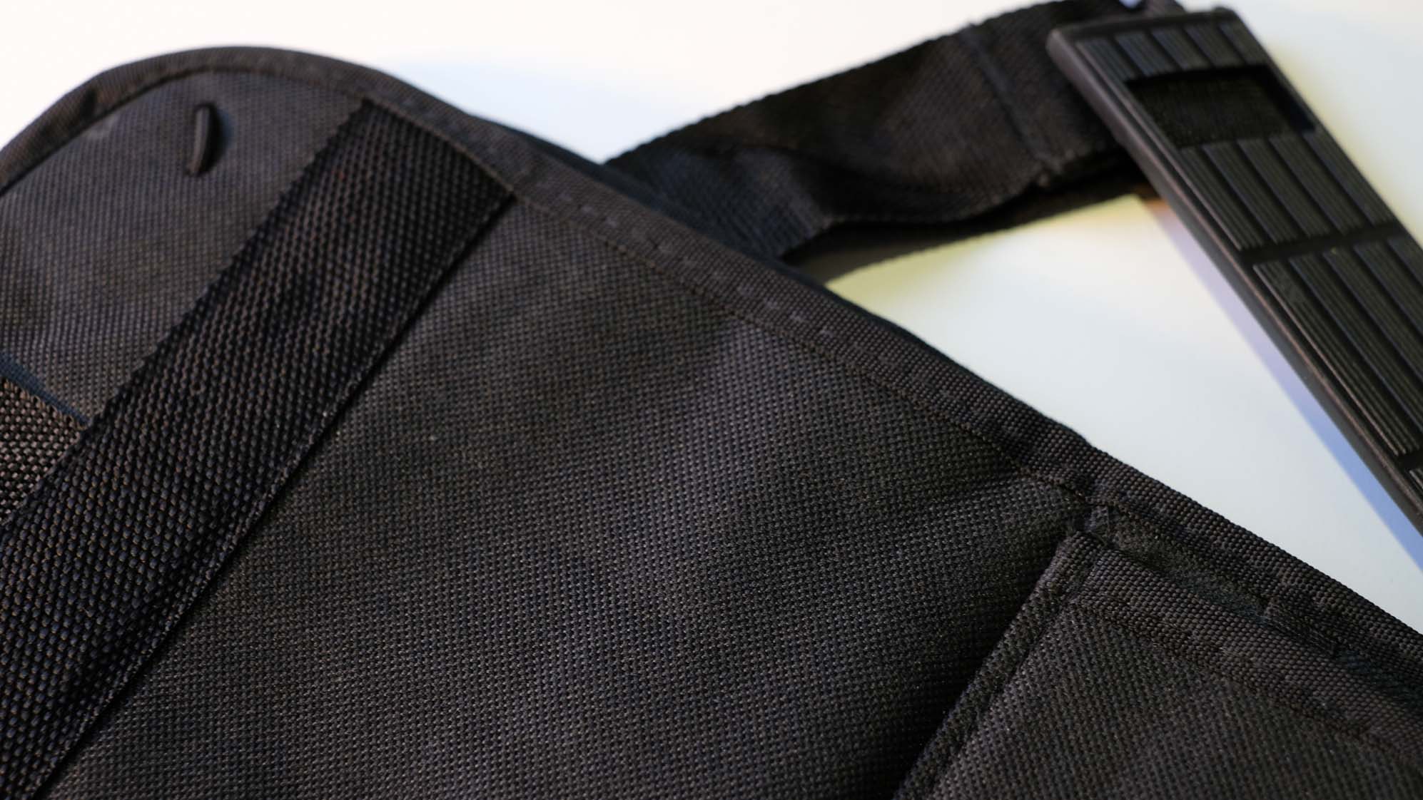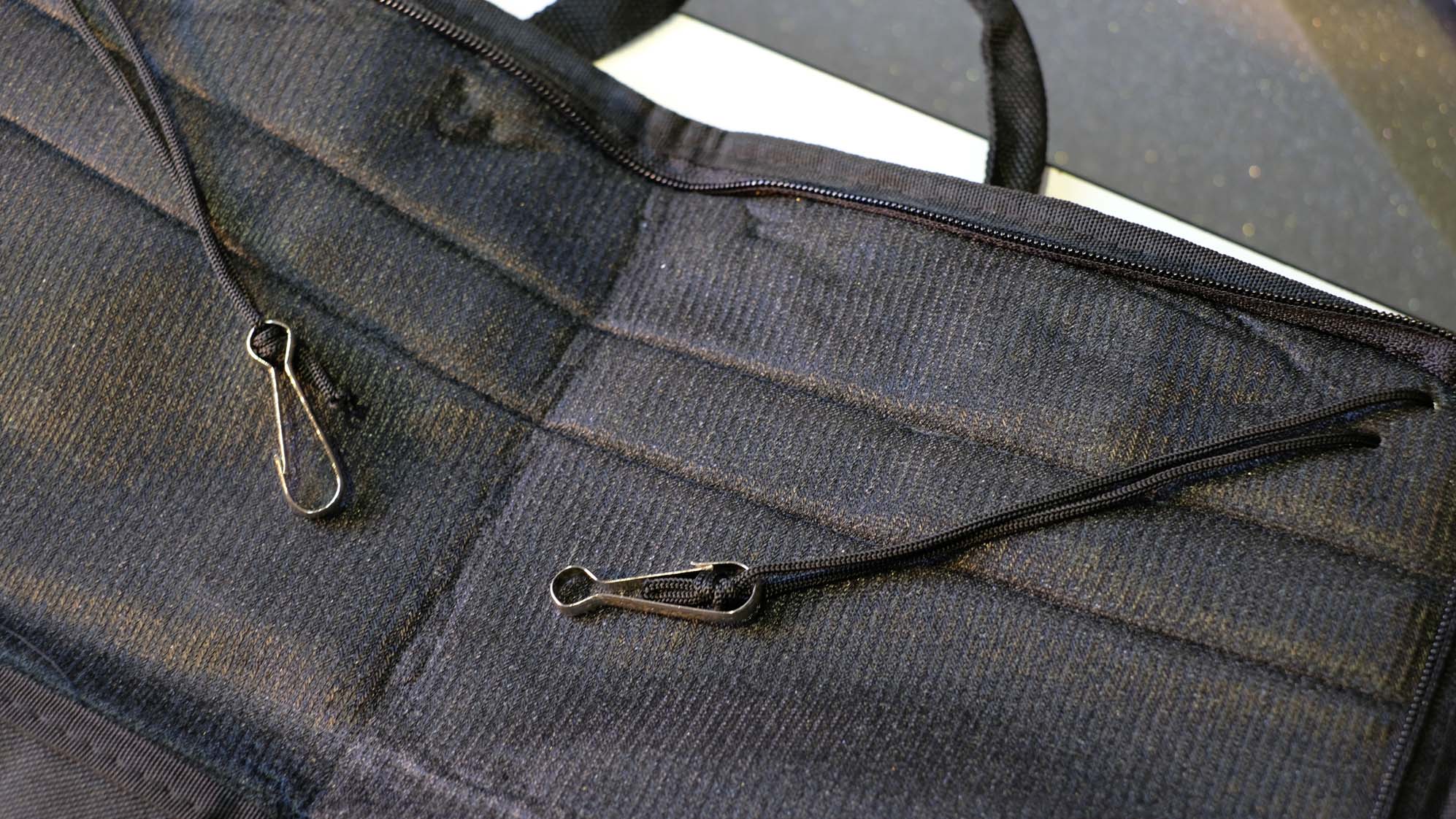 กระเป๋าใส่ไม้กลอง สี BLACK ลักษณะ ตัวกระเป๋า ทำจากผ้าเย็บแบบติดให้รูปทรงแบบ แบน มีซิปเชื่อม เปิดปิดด้านข้าง และมีช่องกระเป๋า ด้านหน้าสามารถเอาไว้ใส่อุปกรณ์ เล็ก ๆ น้อย ๆได้ มาพร้อมกับสายสะพายในตัว