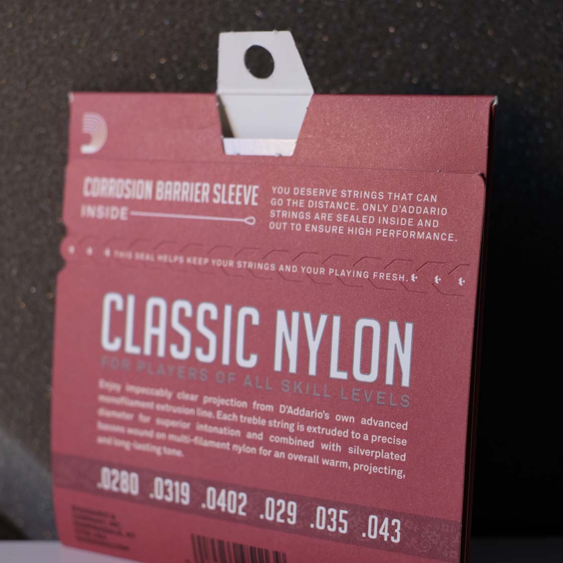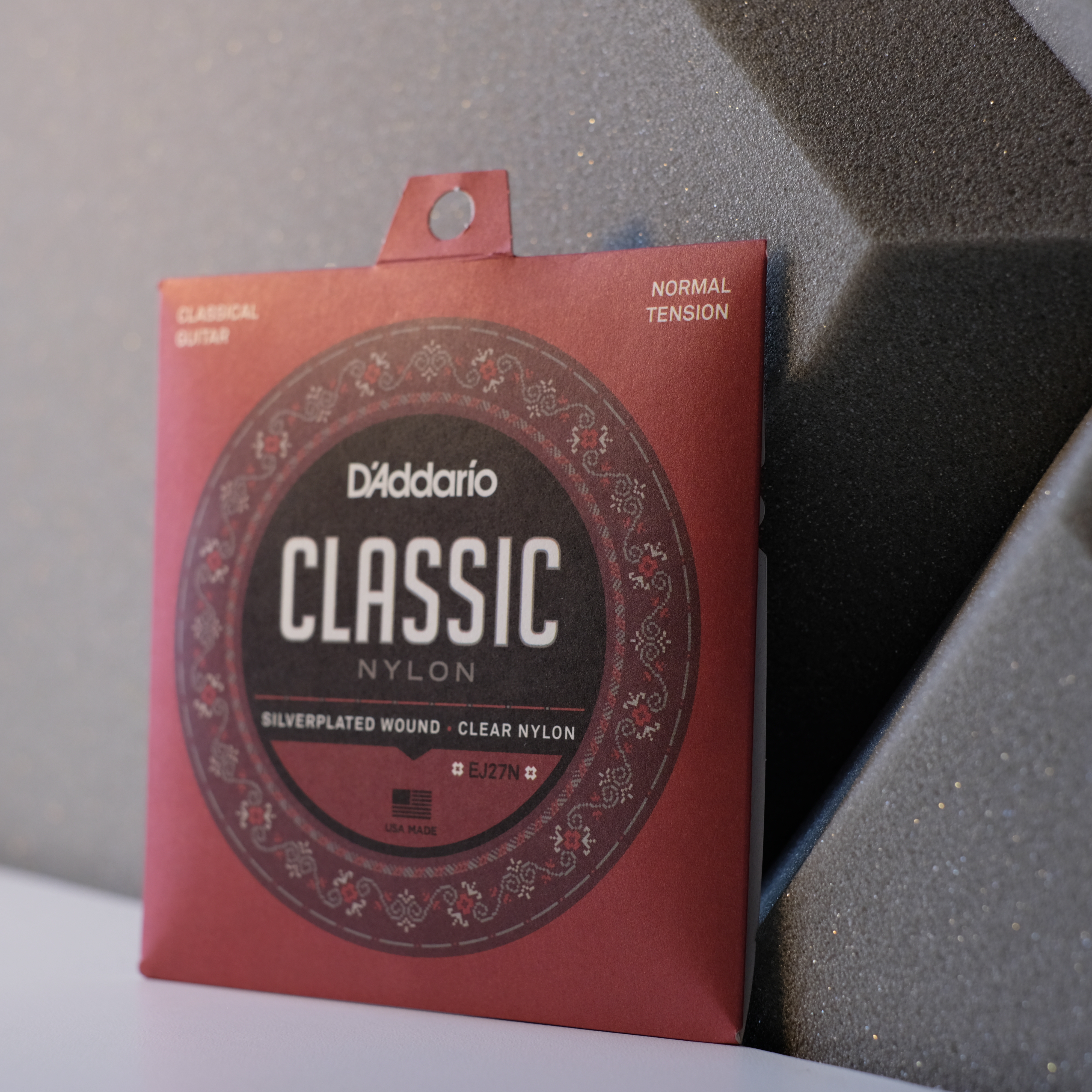 D'Addario's EJ27N Classic Nylon guitar strings are great for beginners, students and professionals alike. This normal tension set contains 3 clear nylon trebles and 3 silver-plated copper wound basses for the optimal balance of warm and projecting, long lasting tone. This normal tension set is also available for fractional 1/2 and 3/4 size classical guitars.