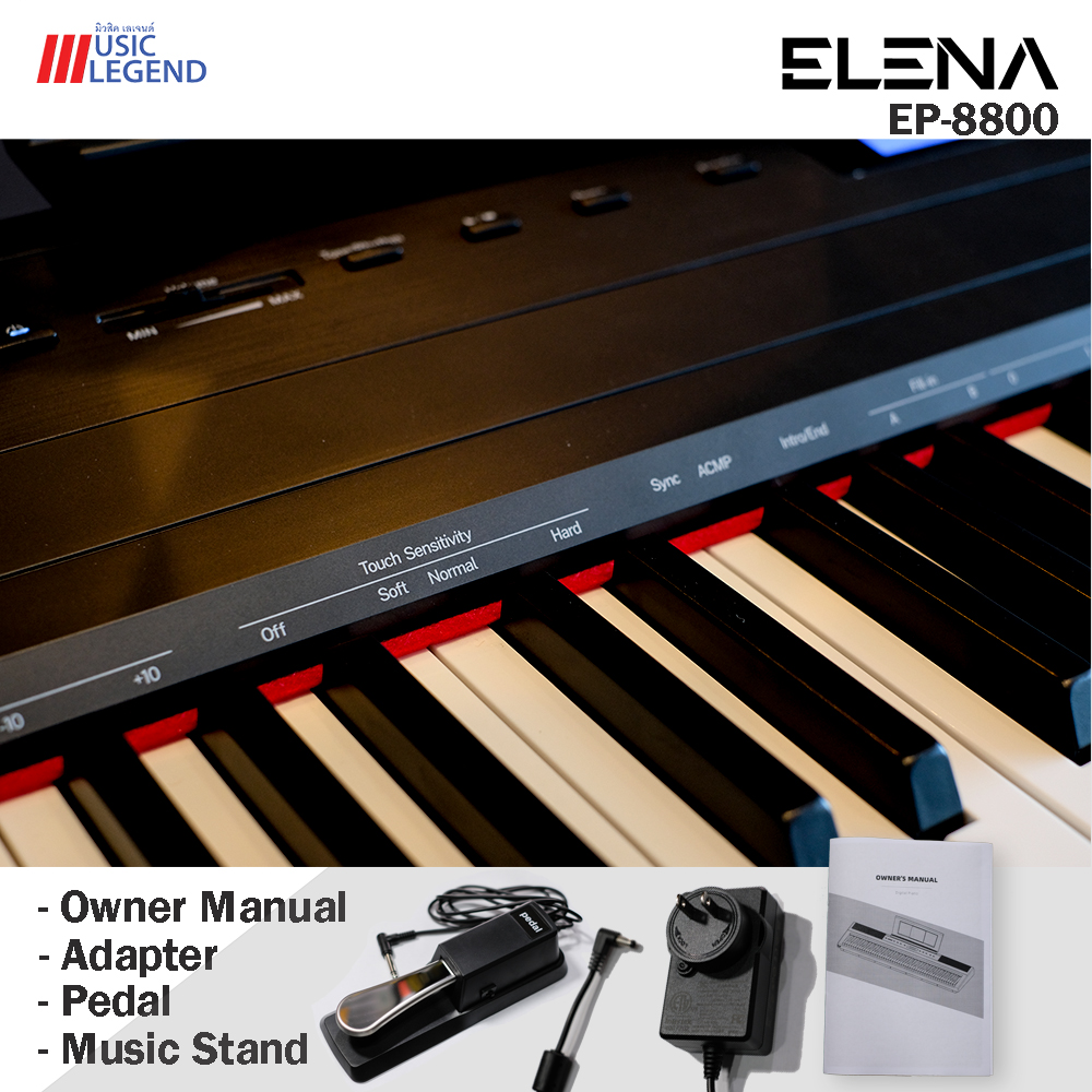 ELENA EP8800 เปียโนไฟฟ้างานคุณภาพในงบเริ่มต้น ใช้เสียงจาก Steinway Grand Piano มาในรูปแบบ 88 คีย์ ลิ่มคีย์ระบบ Hammer Action เสมือนเล่นอคูสติกเปียโน มีถึง 238 โทนเสียงในตัว และ 200 จังหวะ เหมาะสำหรับผู้ที่ต้องการเริ่มเรียนเปียโนจริงจัง มีระบบบันทึกเสียงเพื่อช่วยแก้ไขจุดบกพร่องให้การซ้อมพัฒนาได้อย่างรวดเร็ว พร้อมเมโทรนอมนับจังหวะหลากหลายรูปแบบ