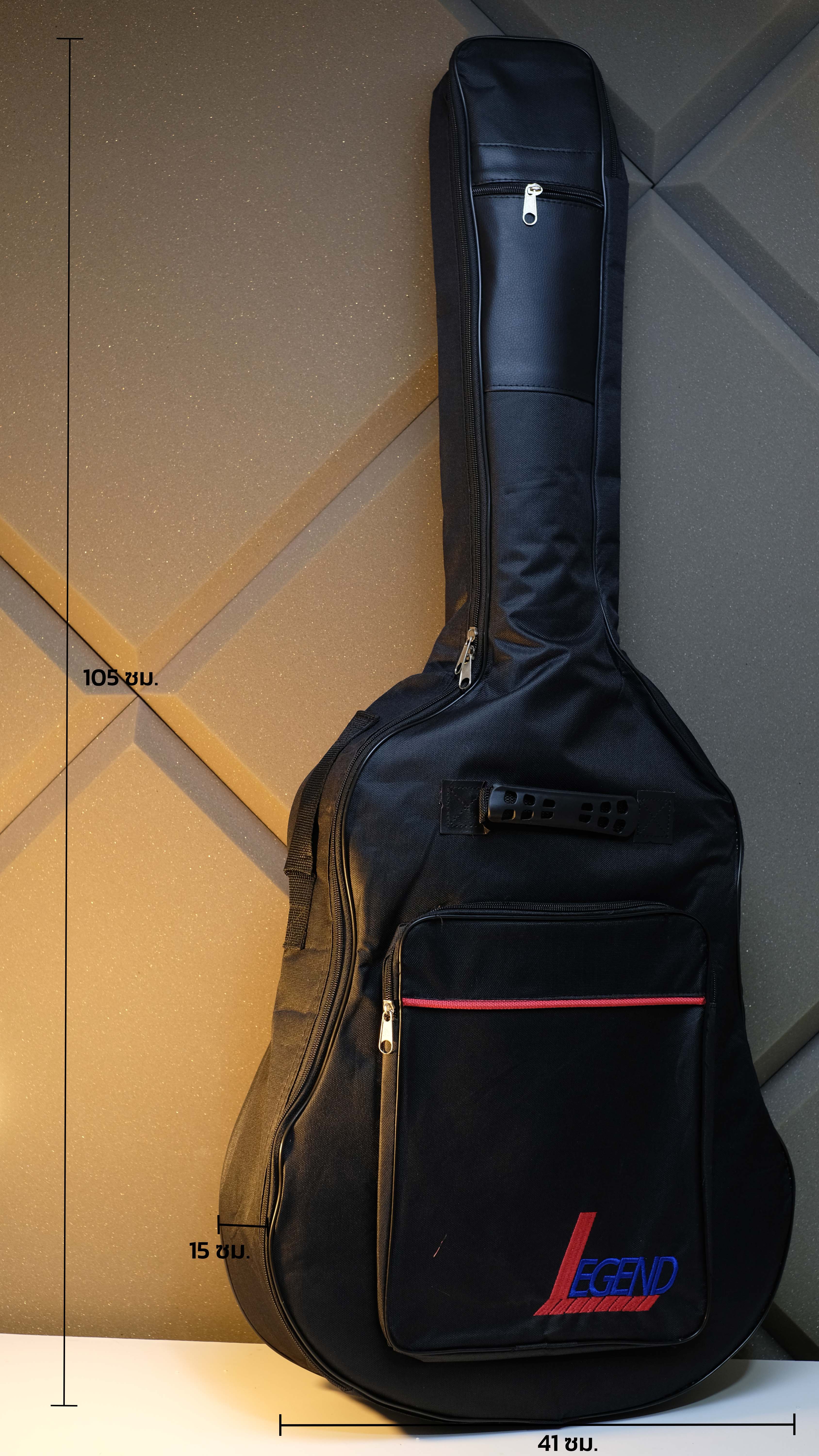กระเป๋าใส่กีตาร์โปร่งอย่างดี มาพร้อมสายสะพายด้านหลัง หูหิ้วเสริมยางยึดจับแข็งแรงทนทาน ไม่ลื่นมือ 2 ตำแหน่ง มีความแข็งแรง ทนทาน มีช่องสำหรับใส่อุปกรณ์ ซิปกระเป๋าอย่างดี กระเป๋าใส่กีตาร์โปร่ง บุฟองน้ำแบบหนา รุ่นสะพายหลังสำหรับกีต้าร์โปร่งขนาด 41 นิ้ว วัสดุพิเศษ ป้องกันรอยขีดข่วนอย่างดีเยี่ยมปกป้องมั่นใจ รอบตัวกีต้าร์ทุกการใช้งาน ช่องใส่อุปกรณ์ขนาดใหญ่ ทั้งด้านหน้า และช่องใส่สายสัญญาณและอุปกรณ์เล็กด้านบน ซิปขนาดใหญ่ ทำจากโลหะ กันกระแทกด้านล่างสองจุด สายสะพายขนาดใหญ่ สะพายกีต้าร์ของท่านไม่ต้องกลัวเจ็บไหล่อีกต่อไป